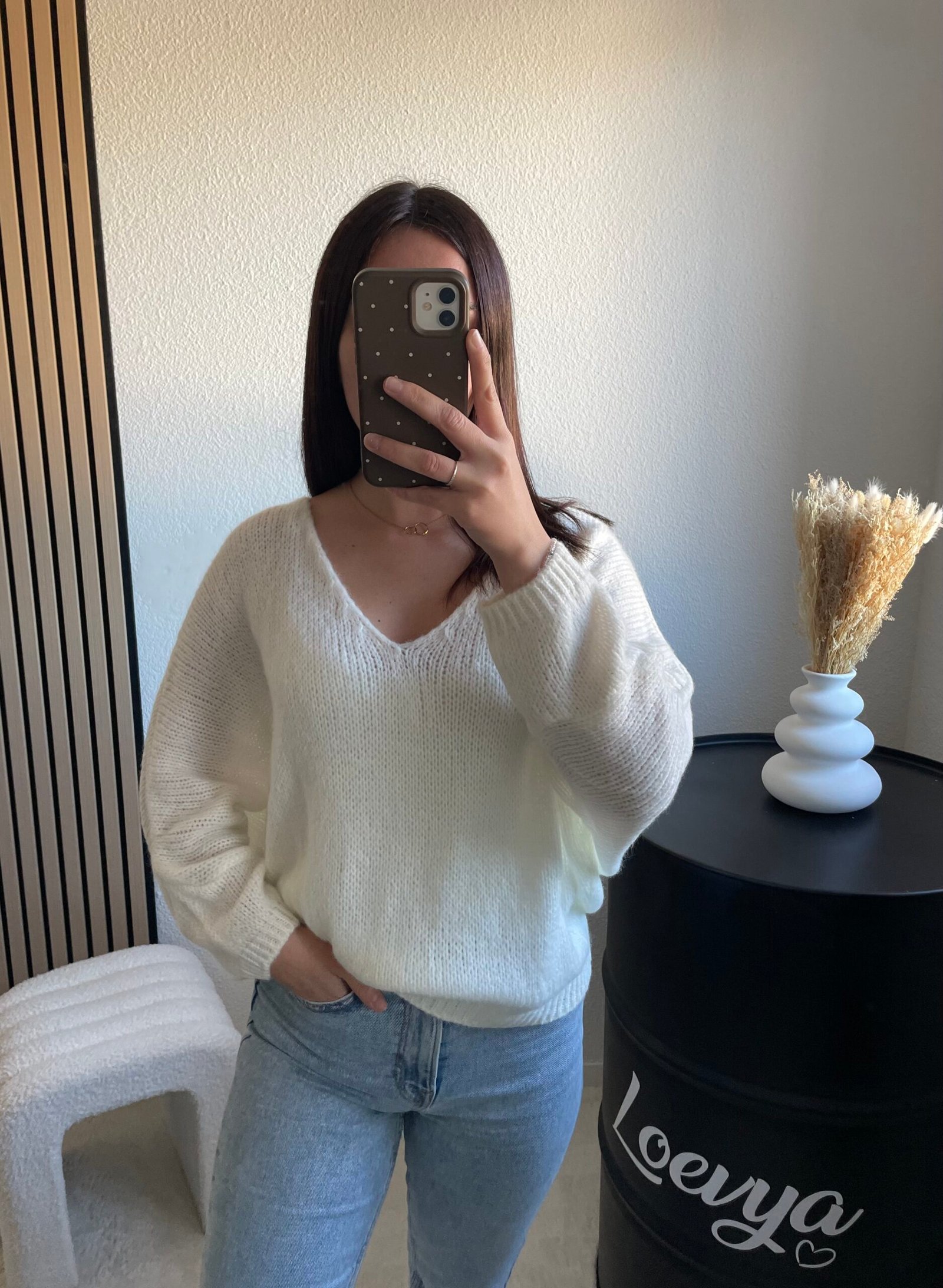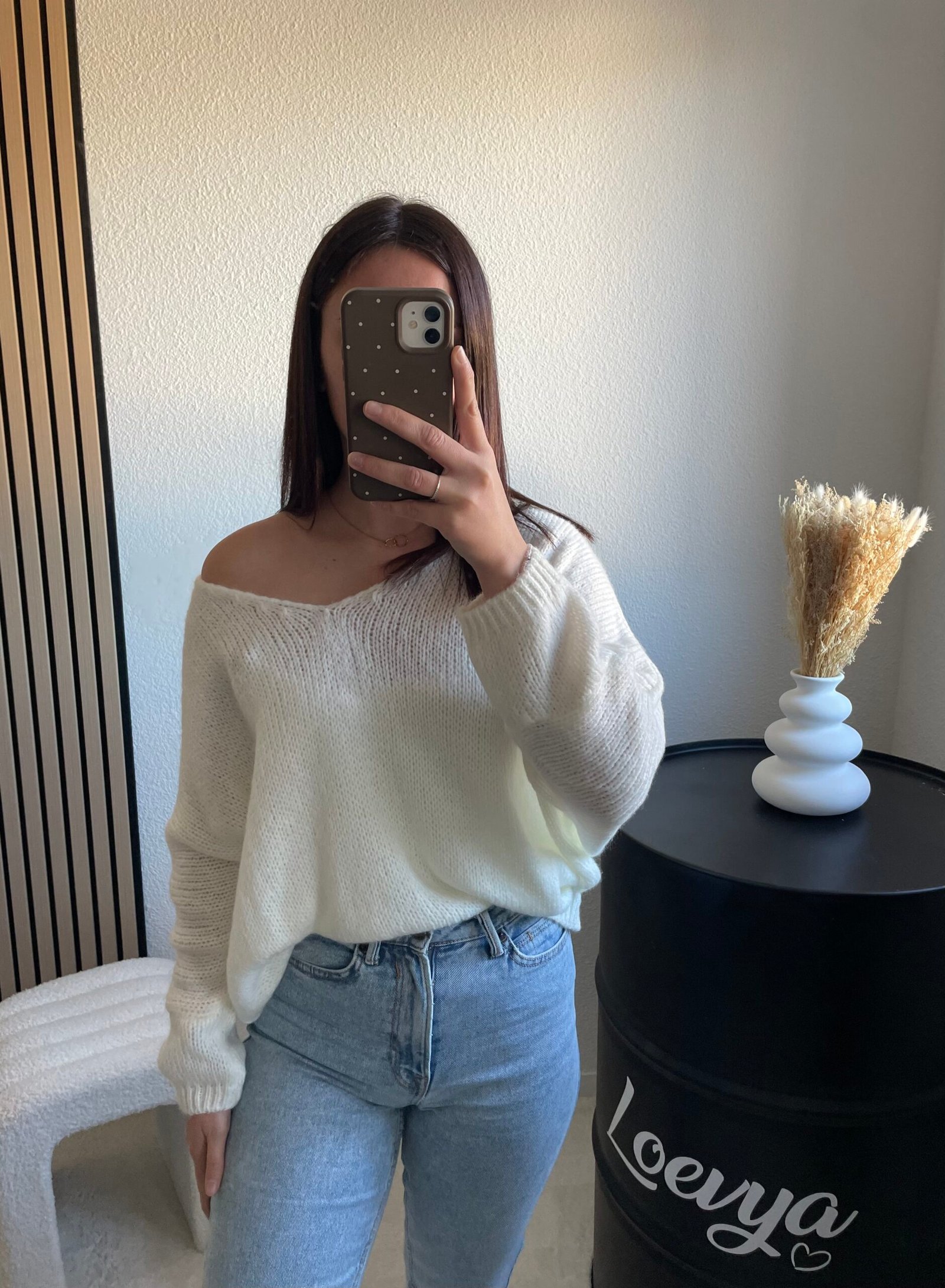Découvrez le Pull Eva, un pull à l’effet manche chauve-souris au col en V, qui allie confort et style avec élégance. Sa coupe fluide et son décolleté en V permettent de le porter aussi bien avec une chemise pour un look chic et structuré, qu’avec une épaule dénudée pour une allure plus féminine et moderne. Une pièce tendance, facile à associer, idéale au quotidien.