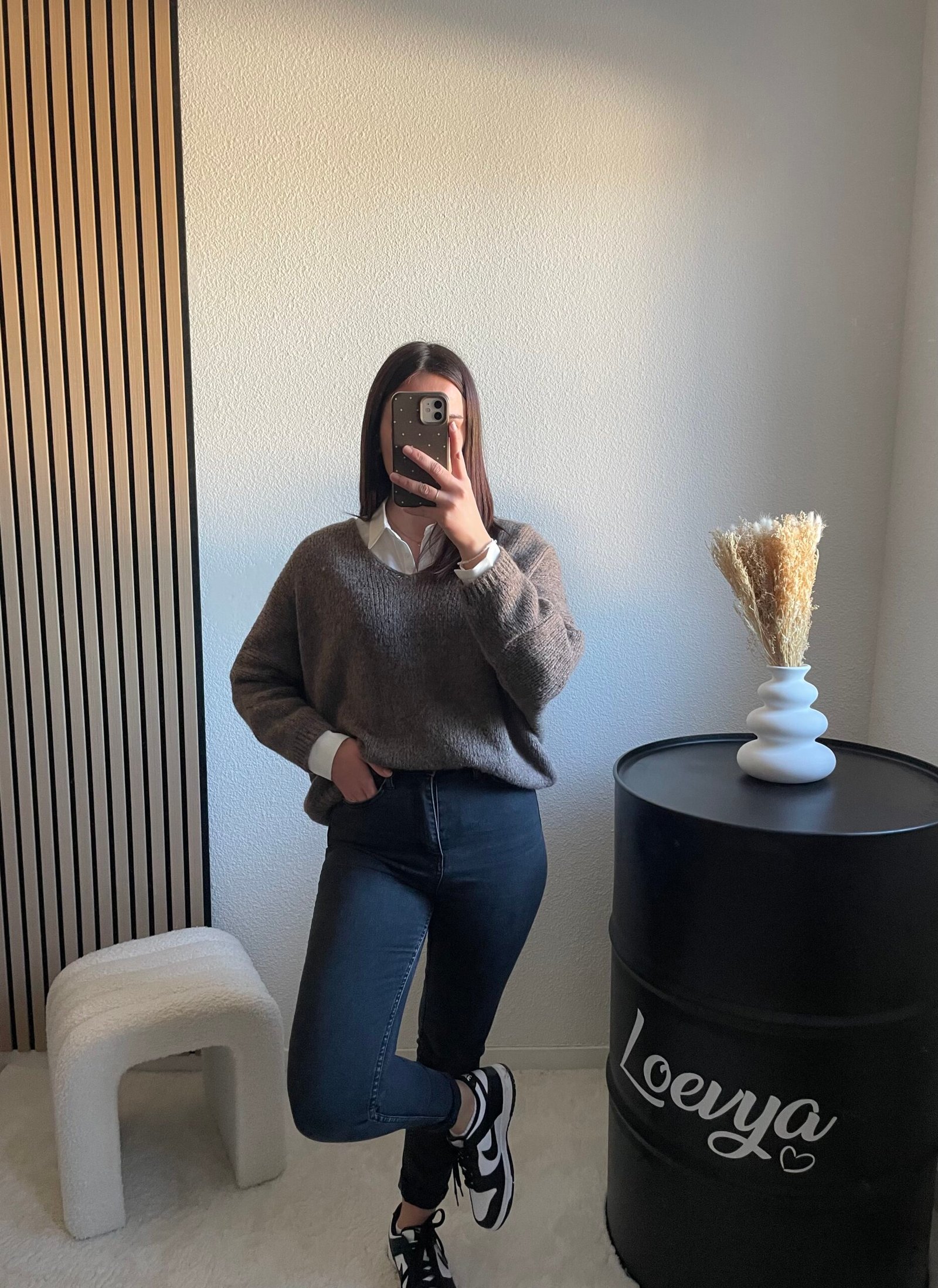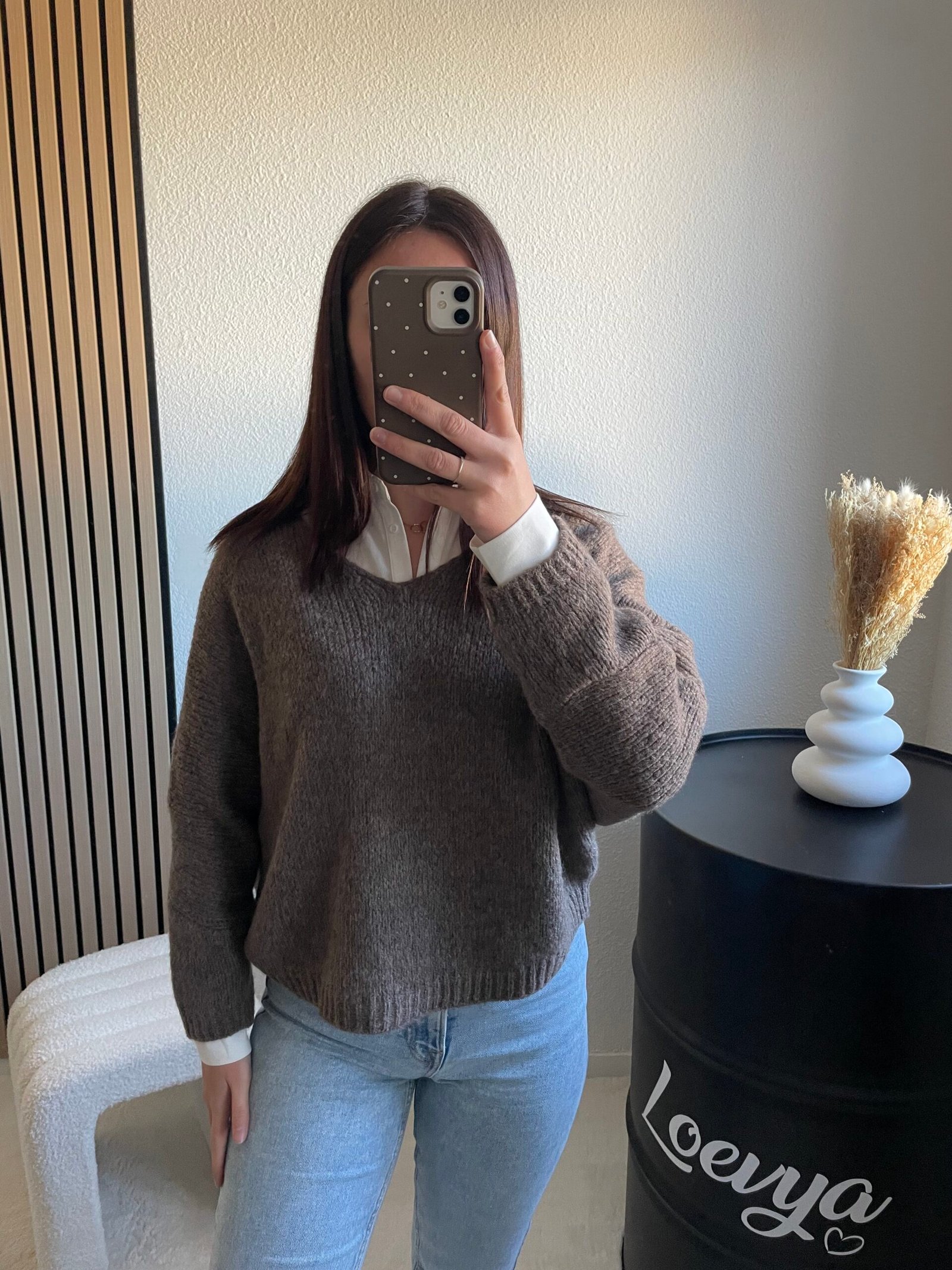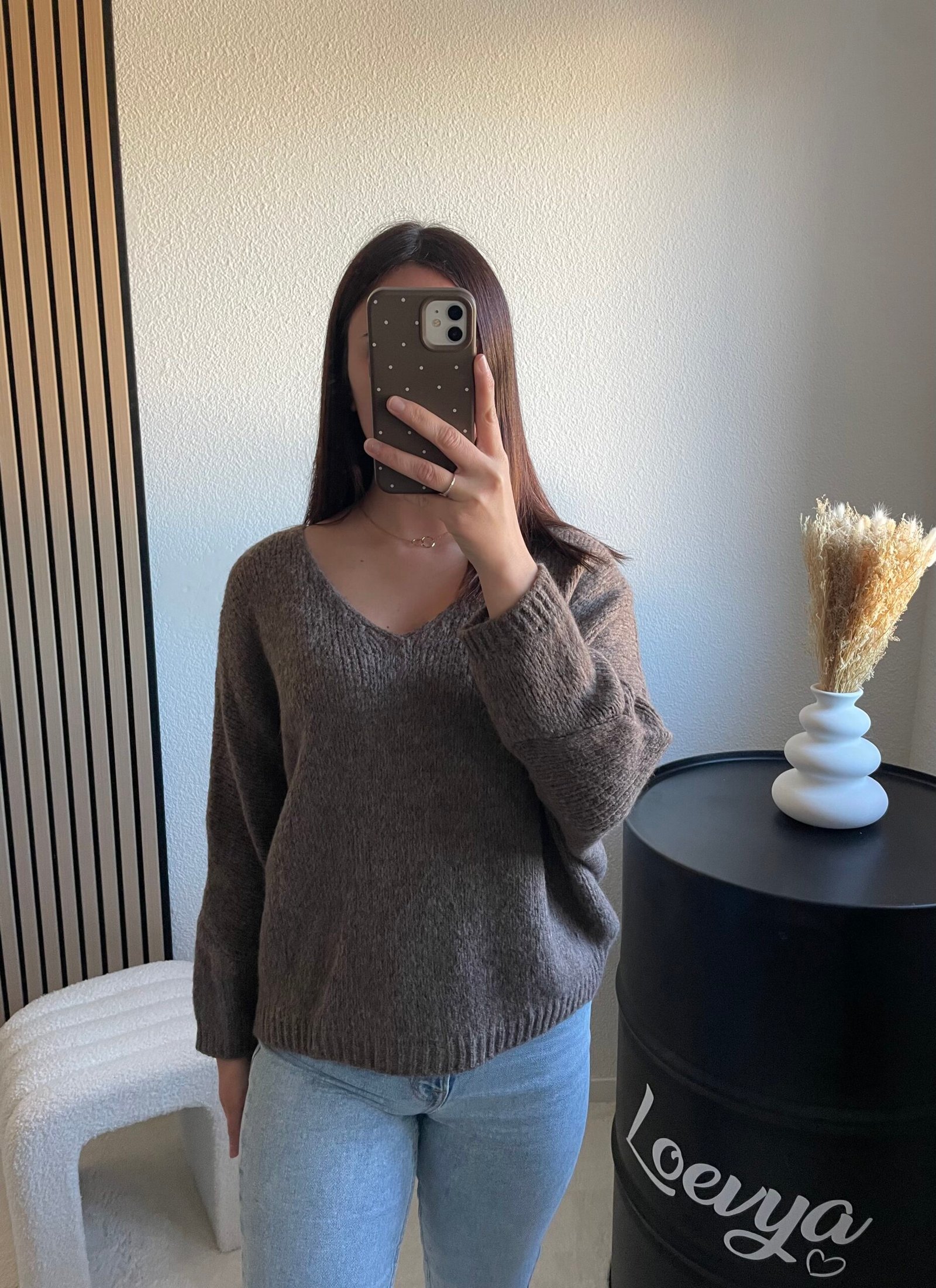 Découvrez le Pull Eva, un pull à l’effet manche chauve-souris au col en V, qui allie confort et style avec élégance. Sa coupe fluide et son décolleté en V permettent de le porter aussi bien avec une chemise pour un look chic et structuré, qu’avec une épaule dénudée pour une allure plus féminine et moderne. Une pièce tendance, facile à associer, idéale au quotidien.