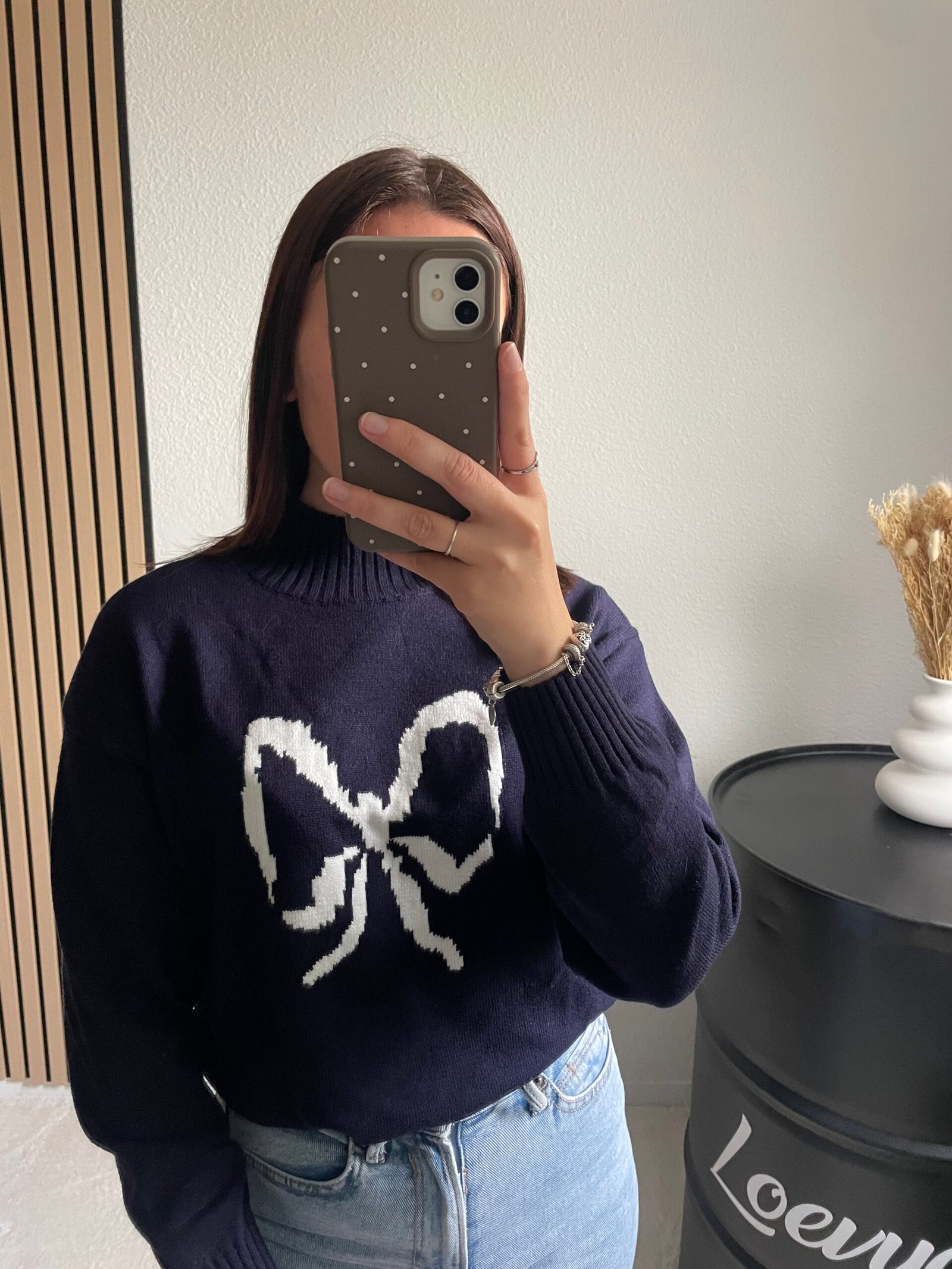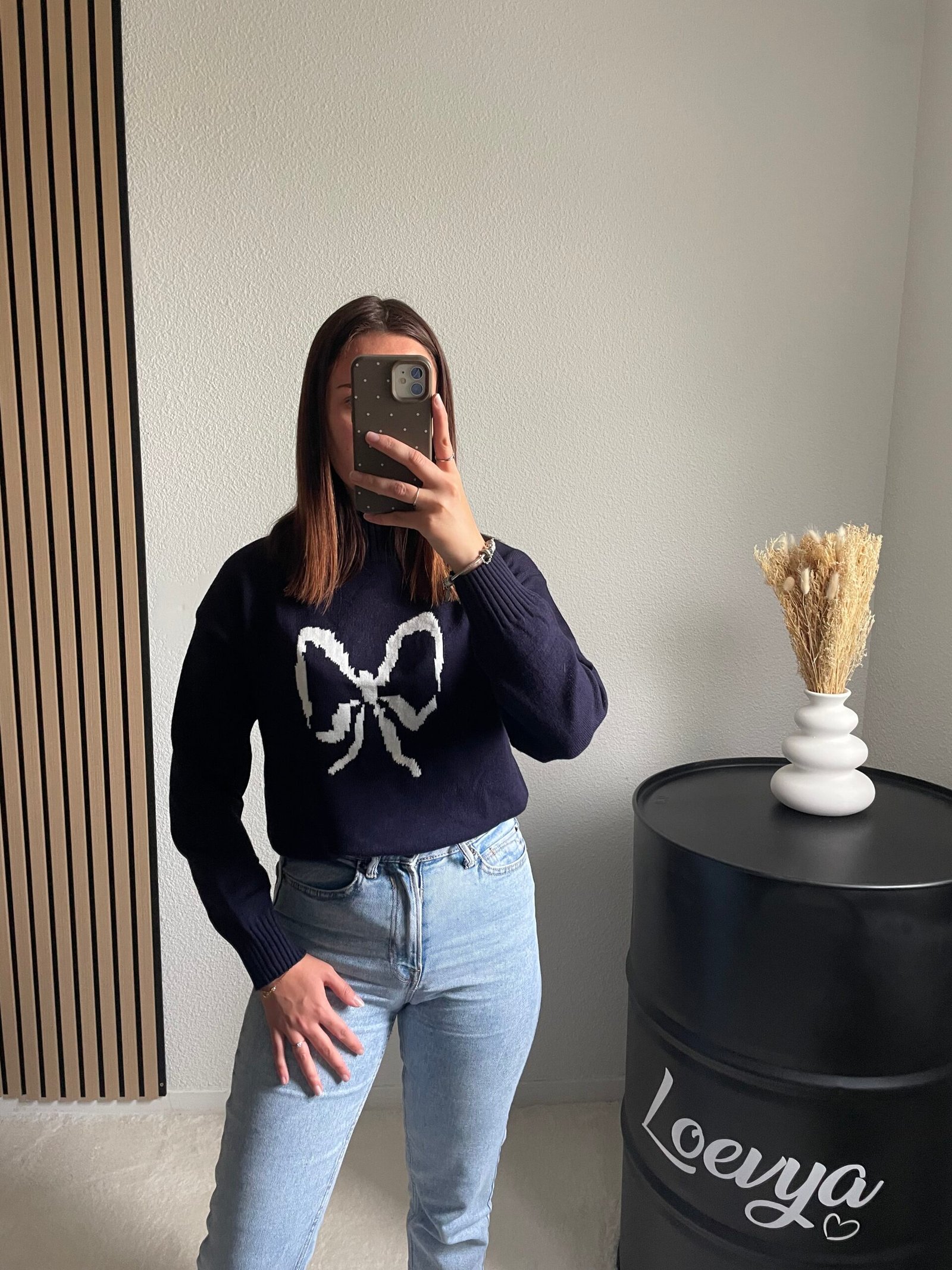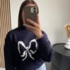 Découvrez le Pull Papillon, un modèle chic et intemporel. Sa maille douce couleur bleu marine met en valeur un joli nœud papillon blanc brodé au centre, pour une touche élégante et féminine. Un essentiel à la fois sobre et raffiné, parfait pour toutes les occasions.