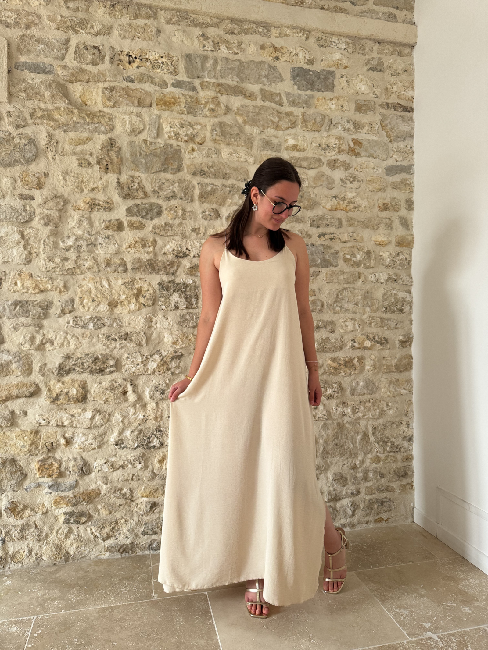 Découvrez la Robe Léa, une pièce élégante et audacieuse, parfaite pour sublimer votre silhouette avec féminité. Son dos nu croisé apporte une touche de sensualité tout en assurant un maintien harmonieux, tandis que sa fente sur le côté dévoile subtilement la jambe pour un effet à la fois chic et moderne. Sa coupe fluide et légère accompagne chacun de vos mouvements avec grâce, idéale pour les journées ensoleillées comme pour vos soirées. Déclinée en plusieurs coloris, elle s’adapte à toutes vos envies.