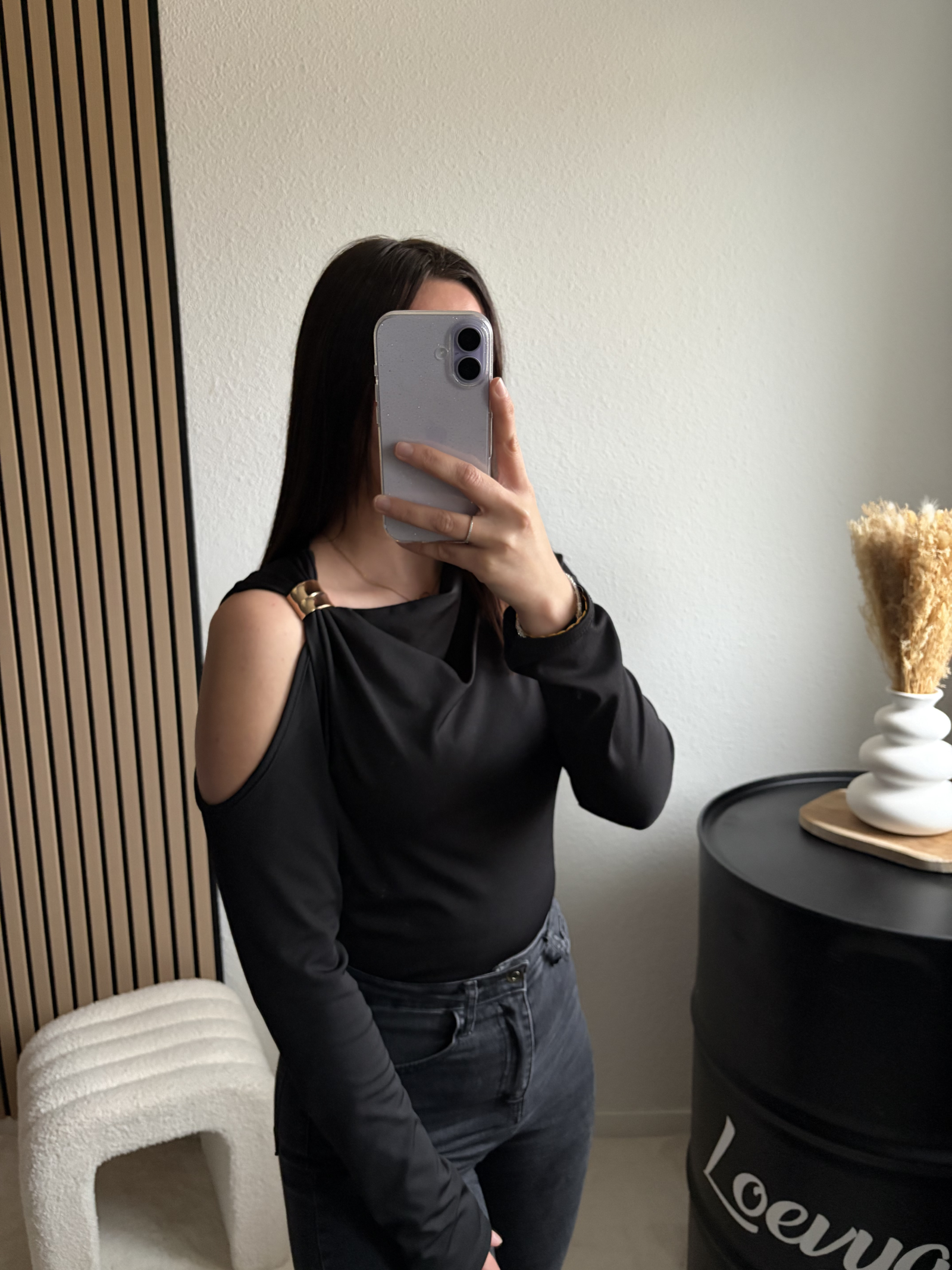 Découvrez le Top Asymétrique, une pièce moderne et sophistiquée qui sublime la silhouette avec élégance. Sa coupe asymétrique apporte une touche originale et tendance, tandis que sa boucle dorée ajoute une finition chic et raffinée. Confortable et agréable à porter, il se prête aussi bien à un look habillé qu’à une tenue plus décontractée.