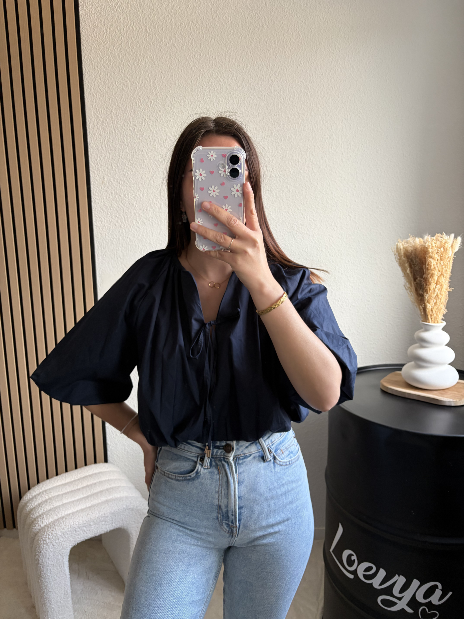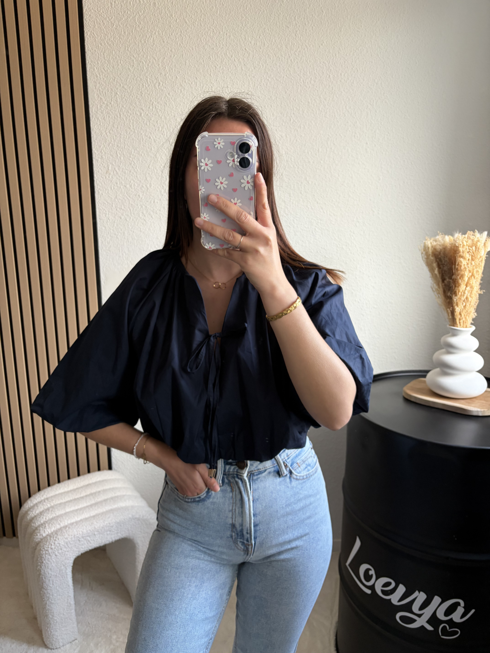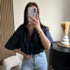 Découvrez le Top Marine, une pièce tendance et féminine qui apporte du caractère à votre tenue. Sa coupe crop top met en valeur la silhouette, tandis que ses manches ballon ajoutent une touche de volume élégante. Son nœud sur le devant vient sublimer l’ensemble pour un look à la fois chic et moderne.